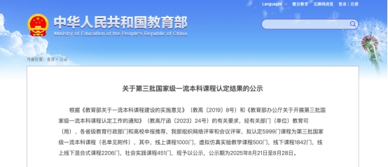 本网讯 日前,教育部发布了《关于第三批国家级一流本科课程认定结果的公示》,伟德