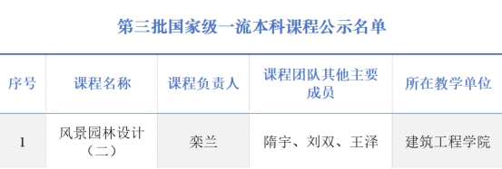 教师栾兰的《风景园林设计(二)》课程入选国家级一流本科课程(社会实践课程)。