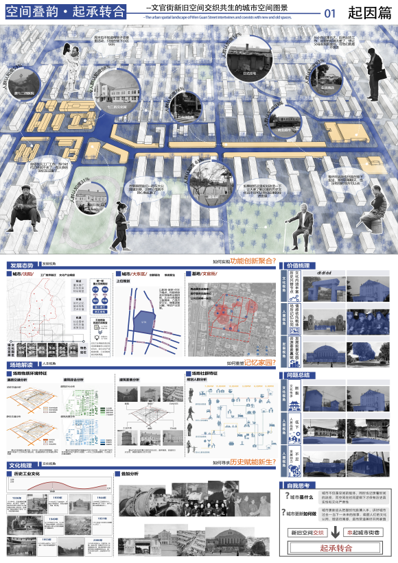 二等奖作品《空间叠韵·起承转合——文官街新旧空间交织共生的城市空间图景》