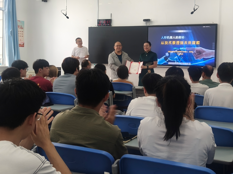 创新实践中心主办的“人形机器人技术前沿讲座”在思贤楼104教室举行。沈阳艾创机器人科技有限公司创始人、总经理、机器人领域资深专家石林应邀担任主讲,系统解读人形机器人从机械结构到智能系统的发展历程,并依托宇树科技H1等实体机器人,为师生带来一场从理论到实践的技术展示。