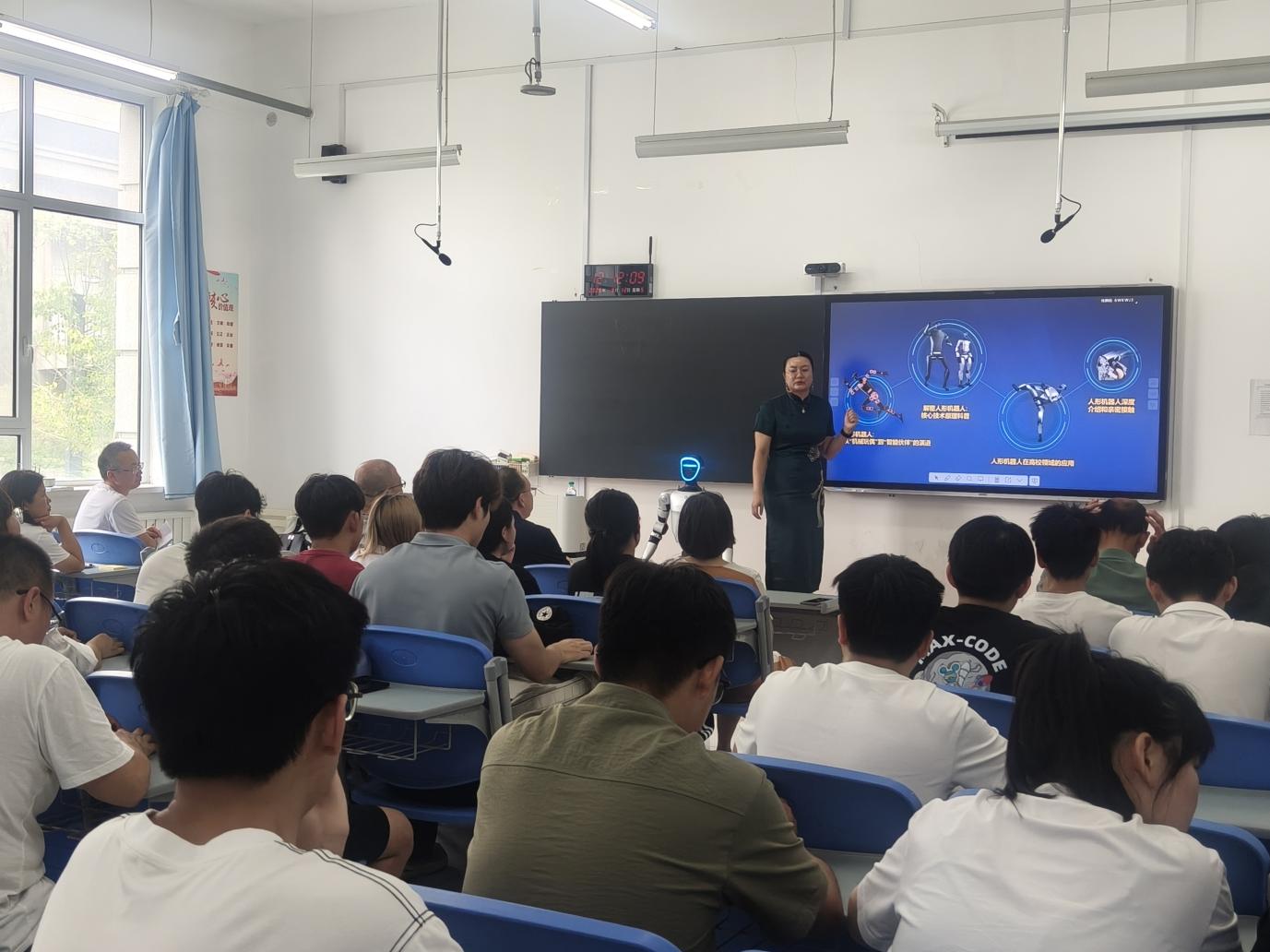 讲座聚焦技术演进、核心原理、高校应用和产品实践四大核心模块。石林以通俗语言讲解了人形机器人的运动控制、感知交互与AI算法等关键技术,并结合宇树H1机器人现场演示步态控制、视觉识别等能力,让师生“零距离”体验智能机器人的实时响应与运动能力。
