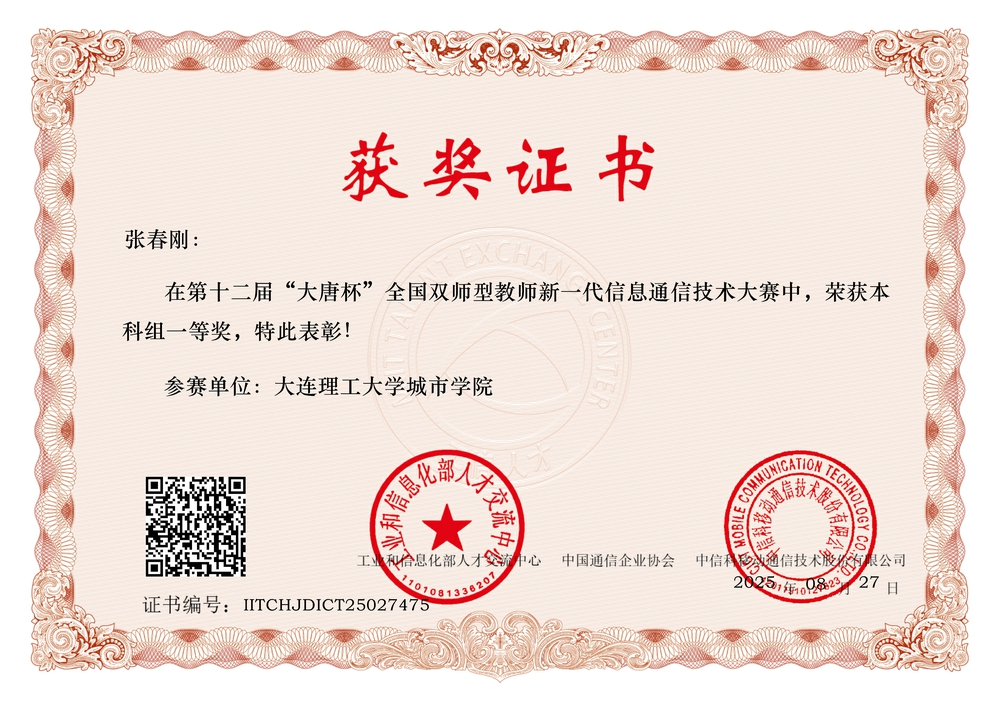 张春刚老师获全国一等奖,实现教师在该赛事中的新突破。该项赛事于2022年入选全国普通高校教师教学发展指数榜单,是目前信息通信领域唯一的教师竞赛项目。