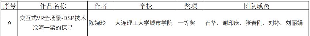 通信工程专业陈婉玲老师及其团队完成的作品《交互式VR全场景——DSP技术沧海一粟的探寻》,荣获全国一等奖。