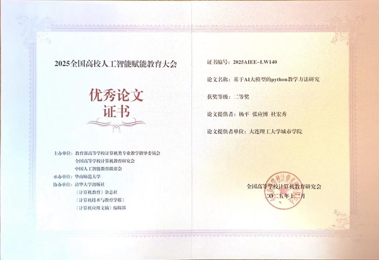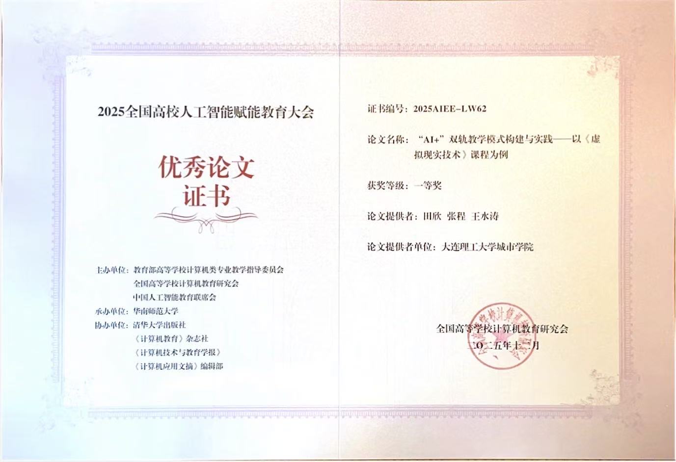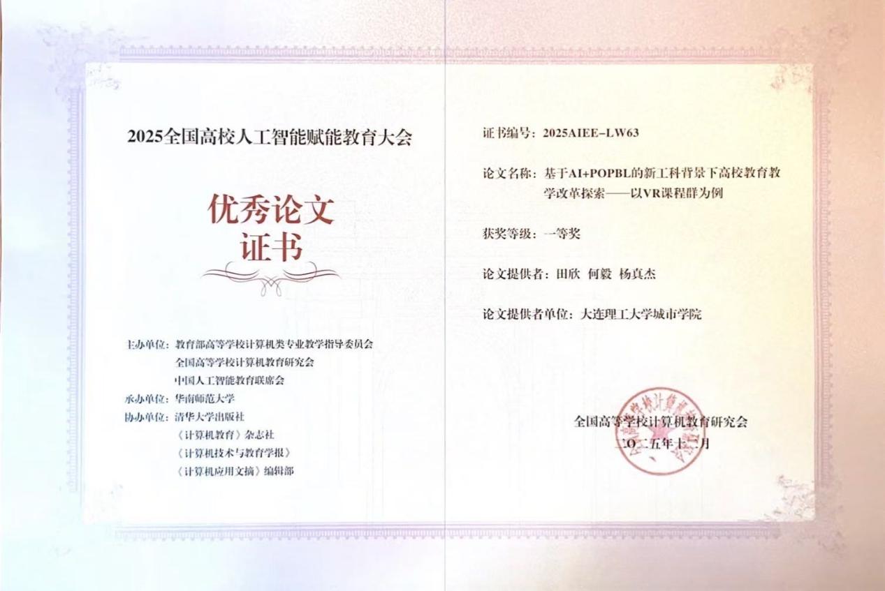 教师田欣、张程、王水涛的《“AI+”双轨教学模式构建与实践--以虚拟现实技术课程为例》以及田欣、何毅、杨真杰的《基于AI+POPBL的新工科背景下高校教育教学改革探索--以VR课程群为例》,凭借深入的实践探索、系统化的教学改革框架获评优秀论文一等奖;杨平、张应博、杜宏秀的《基于AI大模型的python教学方法研究》,将人工智能深度融入教学全过程,成效显著,获评优秀论文二等奖。这一成绩不仅展示了伟德
