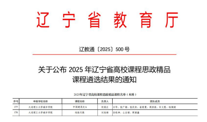 《中国建筑史A》与《线性代数》成功入选省级思政精品课程名单。