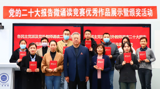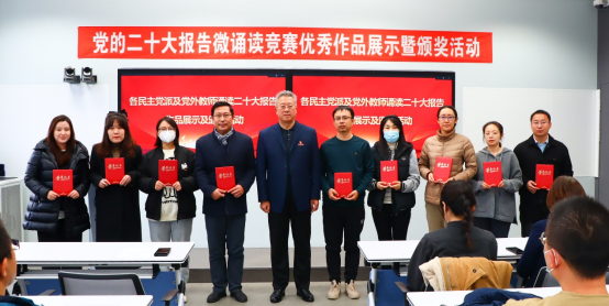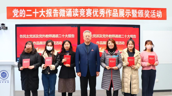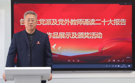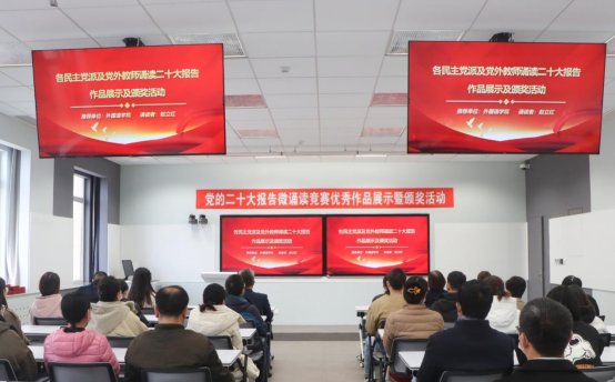 民主党派及党外教师党的二十大报告微诵读竞赛优秀作品展示暨颁奖活动在管理楼308智慧教室举行。党委书记郭玉铸、获奖教师代表和各部门统战联络员出席活动。活动由党委委员、统战部部长葛日波主持。
