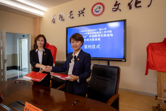 与长兴岛经济技术开发区广福小学在该校会议室举行“未来城市”科创教育实践基地和党建共建基地签约暨挂牌仪式。