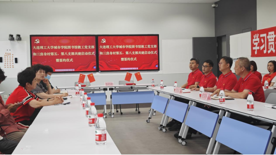 随后,图书馆教工党支部分别和三房身村第五、第八党支部签订共建协议。
