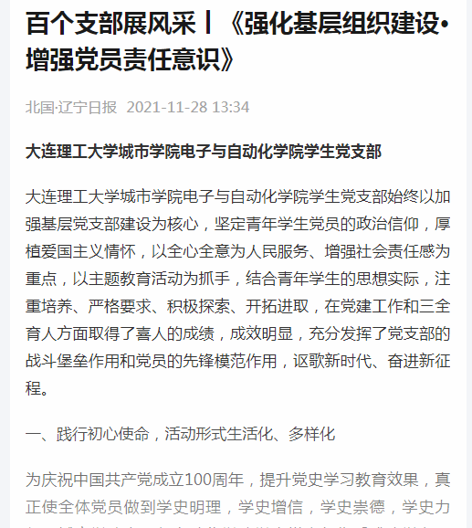 学生党支部相关事迹先后在《辽宁日报》主办的北国新闻客户端和伟德