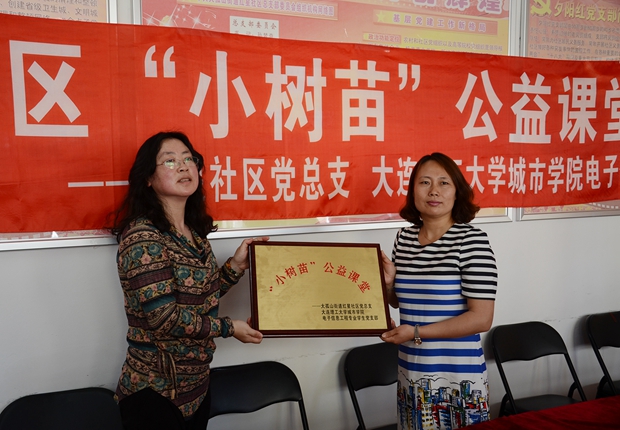 学生党支部在实践中注重培养青年的社会责任感,经常开展环保、关爱空巢老人等社会实践或公益活动。2015年5月,该支部又与大连金普新区大孤山街道红星社区正式启动“‘关爱留守儿童’之‘小树苗’公益课堂”。“小树苗”公益课堂秉承“奉献、友爱、互助、进步”的主旨,结合社区留守儿童的实际情况,大学生志愿者会定期为他们提供课业辅导,开展实践活动。