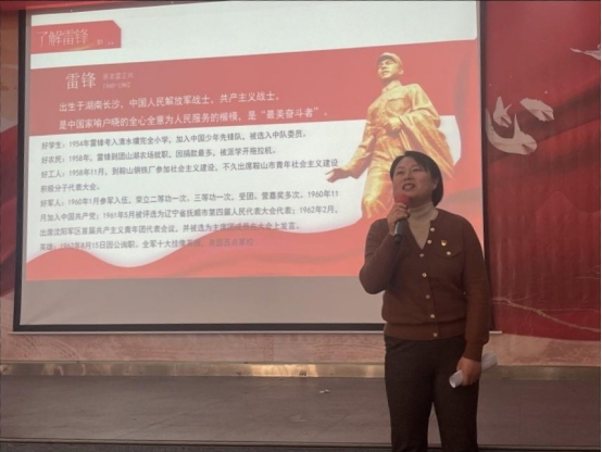 党总支书记刘丽娟老师以《永恒的雷锋永恒的精神》为题向大家讲解了雷锋同志的光辉事迹、雷锋精神内涵及时代意义等内容,并向小树苗公益课堂赠送了《雷锋日记》、《闪闪红星》等书籍和地球仪等文具。