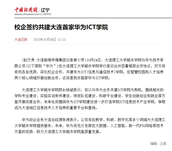 中国新闻网|辽宁:校企签约共建大连首家华为ICT伟德