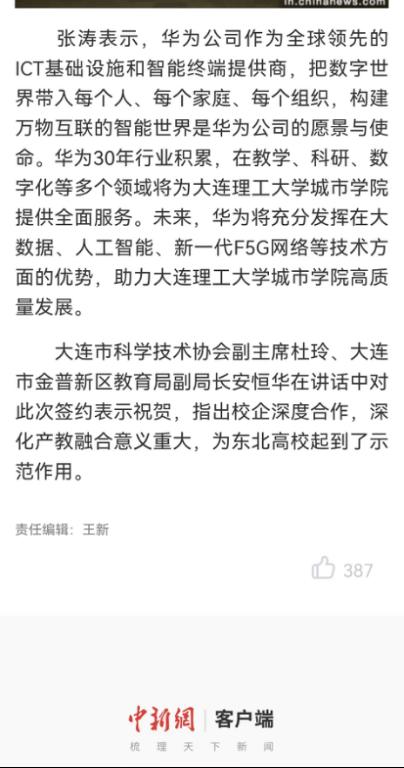 中国新闻网|伟德 与华为签约,共建大连首家华为ICT伟德