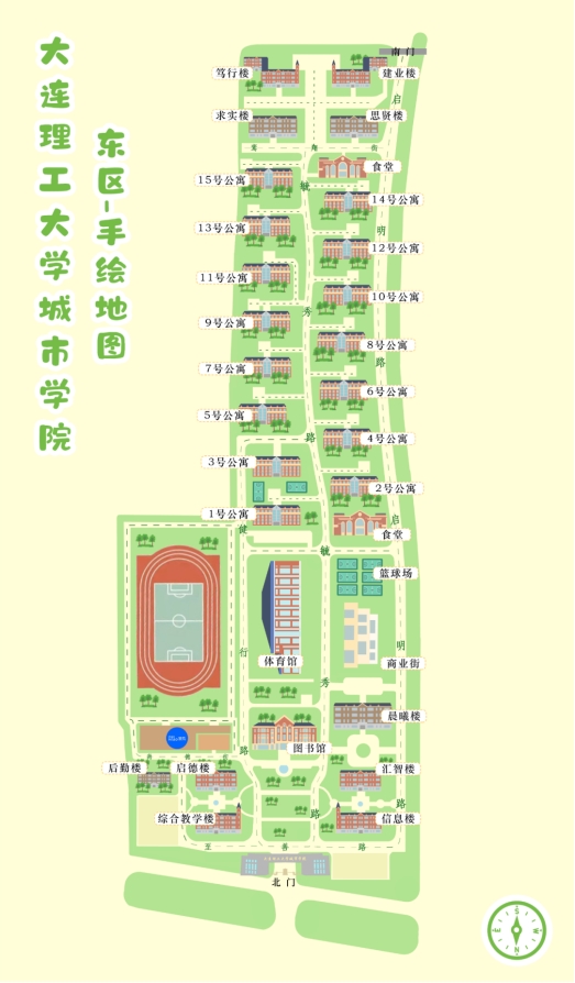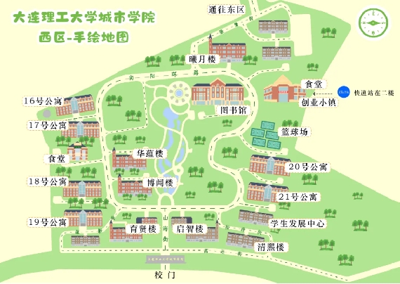 位置:从山海街进入向阳环路,左面第一条道路,位于育贤楼北侧,连接交流中心。