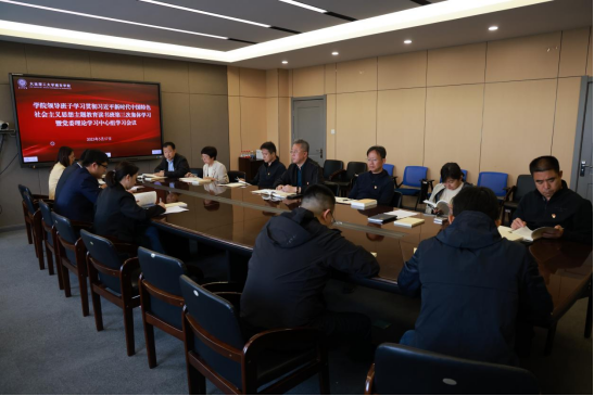 领导班子学习贯彻习近平新时代中国特色社会主义思想主题教育读书班第三次集体学习暨党委理论学习中心组学习会议在行政楼309会议室召开,学习教育、科技、人才“三位一体”重要部署和习近平总书记关于党的自我革命的重要论述。党委书记郭玉铸讲话,作主题教育的进一步推进部署。
