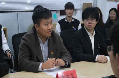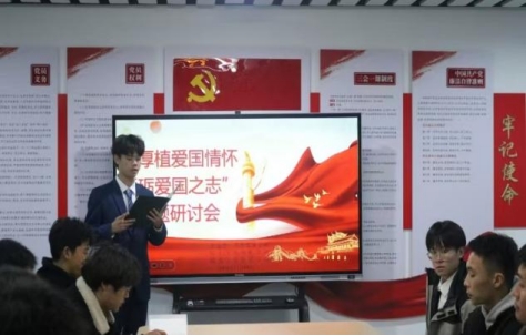 团委书记张永飞老师在五号楼“一站式”学生社区,与同学们一起举办了“厚植爱国情怀,砥砺爱国之志”主题研讨会。