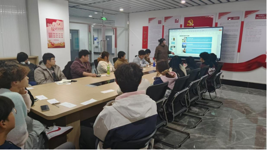 “一站式”学生社区,团委书记赵姝婕同参会同学一起分享思政党课“传承红色基因 坚定文化自信”。