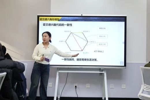 课上,赖洁婷老师带领学员进行了霍兰德职业兴趣探索,以“星球规划师”的身份,让学员自主选择兴趣星球,并采用无领导小组的方式完成各个星球的规划蓝图,由每组分别派代表讲解所在星球规划方案的设计意义。通过对霍兰德职业兴趣理论的进一步讲解,让学员更加明确了兴趣与职业选择、职业满意度的关系等问题,引导学员们识别自己的兴趣方向和职业优势,从而选择适合自己的职业发展方向。
