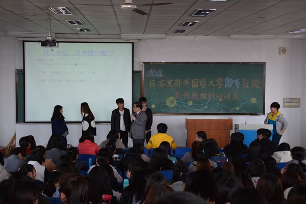 ,以全场互动的方式,为日语专业的15名日语教师和300名学生带来了一场别开生面的外语学习讲座。