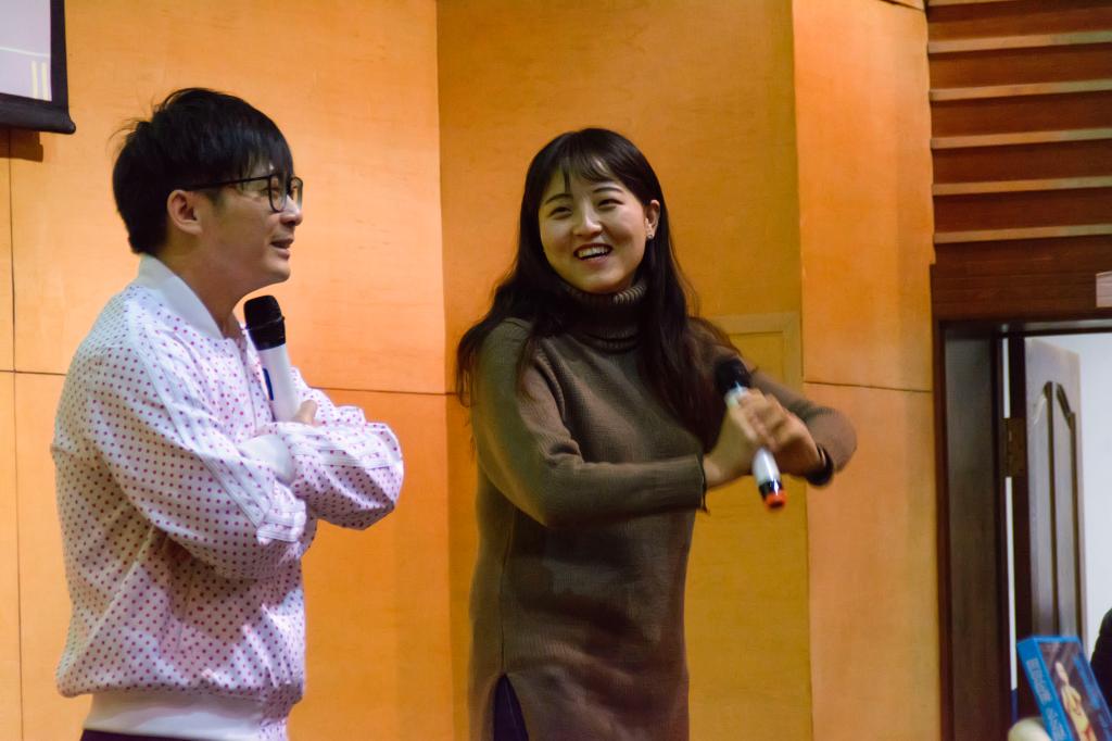 距活动开始还有40分钟时,报告厅里已座无虚席,甚至还有大连海事大学、大连工业大学等高校的学生专程赶来参加畅聊会。畅聊会伊始,大冰团队就以其犀利幽默的语言博得在场观众的阵阵掌声。畅聊会共分为三个环节:现场畅聊、互动问答以及民谣演唱。用他们自己的话来说,就是讲一会儿、聊一会儿、唱一会儿。