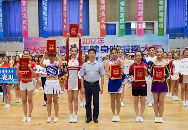 党委书记郭玉铸教授代表承办单位致欢迎词。他说:“啦啦操是结合体操、健美操、街舞、芭蕾等技术的一项涵盖各种体育运动和舞蹈技巧于一体进行综合编排的有氧运动。它的运动特点和综合受益,使得该项目拥有了广泛的社会基础和大众需求,正在快速向社会传播。近年来,国内很多地区相应引进啦啦操运动并迅速普及。在大连这座体育名城、时尚之都,啦啦操运动也日渐发展,蓬勃兴起。目前,大连市各大专院校、健身会所以及中小学参与啦啦操运动的人数已有数千人。参与和受众青少年群体迅速增长。虽然在大连市啦啦操运动具有良好的群众基础,但在全市性的体育赛事中尚属空白,亟待各方力量鼎力襄助!这次由大连元正能源系统有限公司公益冠名的“清洁能源杯”大连市首届青少年健身啦啦操大赛,响应国家的“创新、协调、绿色、开放、共享”五大发展理念,倡导绿色、环保、健康、可持续发展的共识,这与啦啦操运动精神同脉相承,是啦啦操这项面向青春引领时尚的新兴运动的最好阐释!”