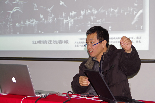 团委和广播电视新闻学教研室共同举办的名师摄影讲座4月10日在教学楼1308教室举行,我国著名摄影家、中国青年报图片总监、高级记者、中国摄影家协会副会长贺延光先生来伟德
