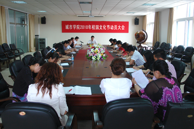 2010年校园文化节。副院长杨斌作动员讲话,郭玉铸书记对举办校园文化节提出工作要求,校园文化节组委会全体成员参加了会议。