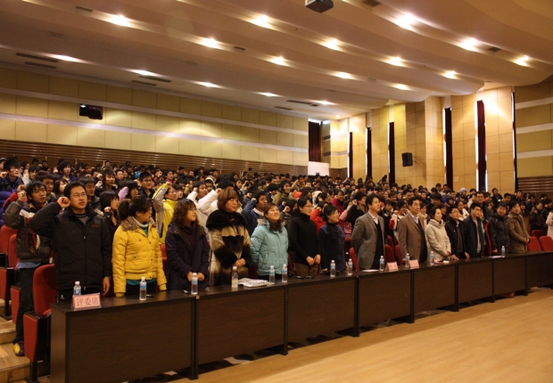 他们的演讲感动了在场的每一名师生,演讲数次被大家的热烈掌声打断。最终,公共事业管理专业0801班黄毅、广播电视新闻学专业0902班周蕊、物流管理专业0904班王玉娇分别获得比赛前三名。