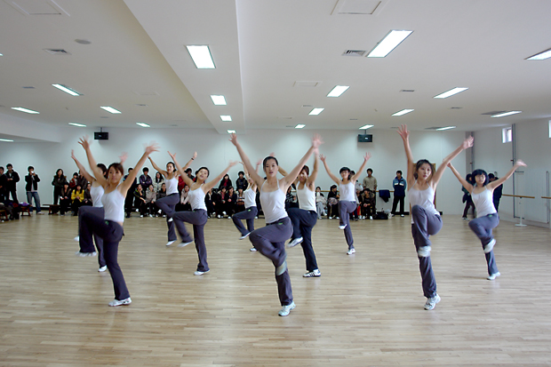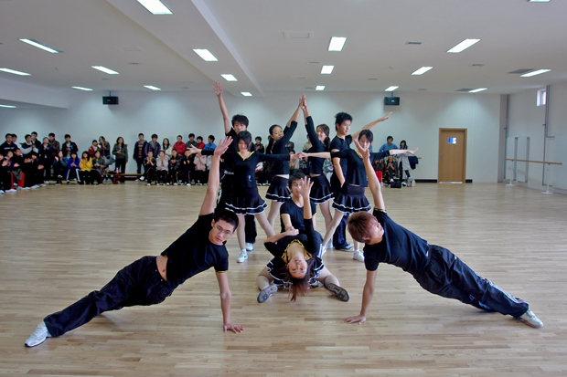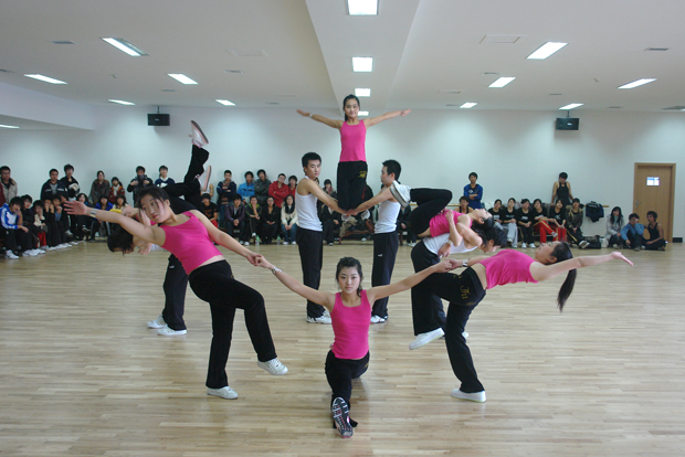 团委和体育教研室在体育馆联合举办首届校园健美操大赛。伟德