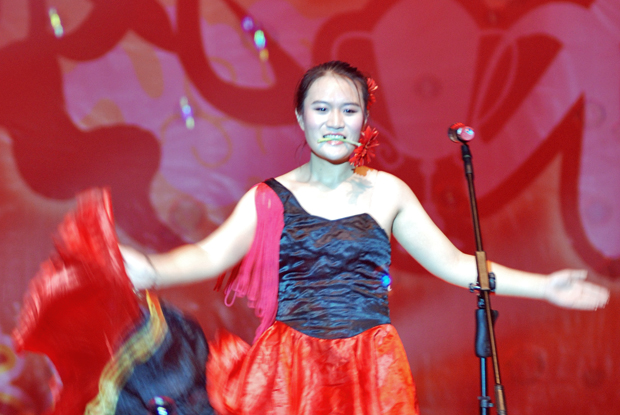 学生杨楚仪带来的美声独唱《西班牙女郎》堪称此版块的一大亮点。从她发出第一个音符的那一瞬间,掌声就绵延不绝,她用浑厚的嗓音与纯熟的演唱技巧完美地演绎了这首经典歌曲,给人以美的享受。再加上她那充满异国风情的服饰和优美的舞蹈,使整个剧场的气氛达到了高潮。