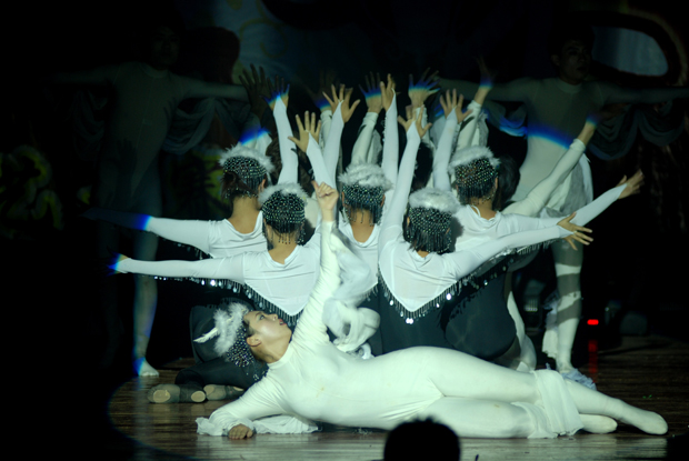 舞蹈团的成员共同演出的,她们是舞台上绚丽的精灵,她们是大海上飞翔的海燕。她们以身体语言为台下的观众展现了一幅海燕振翅高飞、搏击风浪、永不言败的绚丽画面。