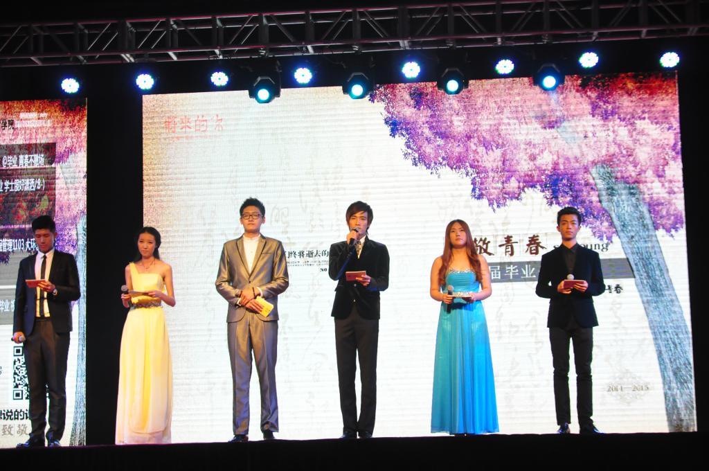 晚会开始前,一段长达10多分钟的视频把2015届毕业生又带回那难忘的大学生活:刚入校时的懵懂无知;老师和学长们的关怀备至;课堂上的聚精会神;图书馆里的埋头苦读;实验室里的刻苦钻研;运动场上的挥汗如雨;社团活动中的激情奔放;志愿者活动时的倾情奉献,生动的画面一一再现,把2015届毕业生对母校、对恩师、对同学、对大学生活的留恋之情一一道出。